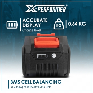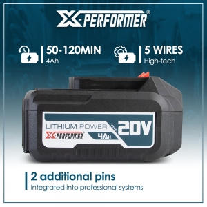 | Retour Vous avez une question Marque: X-PERFORMER Garantie: 3 ans Description: Cette batterie lithium 20V s'adapte sur tous les outils de la gamme X-Performer nouvelle génération (ne convient pas pour la gamme X-Performer blanche) et est compatible avec les chargeurs XPCHAR20-SR1, XPCHAR20-SSR3, XPCHAR20-SSR4, XPCHAR20-DR1 ou XPCHAR20-DSR2). Ces batteries hautes technologies possèdent 5 fils. Le nombre de fils d'une batterie indique son niveau de communication avec l'outil et le chargeur. Plus il y a de fils, plus la gestion électronique est avancée : meilleure sécurité, optimisation de la durée de vie et performances plus précises. Les 2 broches supplémentaires, implantées dans les systèmes professionnels offrent un contrôle poussé : - communication avancée : échange de données plus riches - identification de la batterie : type, capacité… - Etat de charge précis : affiche exact du niveau de charge - Equilibrage des cellules : surveillance individuelle des 5 cellules par le BSM afin de prolonger la durée de vie - Diagnostics possibles : suivis des cycles de charge Caractéristiques : - Voltage : 20V - Capacité : 4Ah - Technologie : Lithium - Temps de charge : 50 à 120 minutes selon le chargeur - Poids : 0.64 kg Code EAN/GLN: 5411074252762 Poids: 0.70 kg Stock: disponible ECO-participation pour une livraison en Belgique: 0,00 € HT Les photos: Vue principale: 110x110 px, 300x300 px, 500x500 px, 1000x1000 px De face: 110x110 px, 300x300 px, 300x300 px, 1000x1000 px De derrière: 110x110 px, 300x300 px, 300x300 px, 1000x1000 px Du dessus: 110x110 px, 300x300 px, 300x300 px, 1000x1000 px Les catégories: Outillage, Batterie Mots clés: Batterie, lithium, concept, X-Performer |