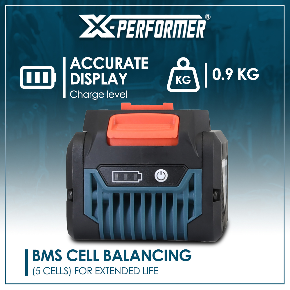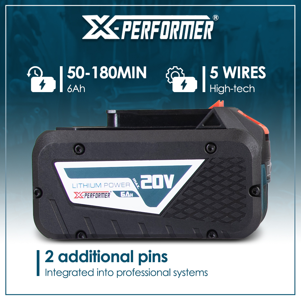 | Retour Vous avez une question Marque: X-PERFORMER Garantie: 3 ans Description: Cette batterie lithium 20V s'adapte sur tous les outils de la gamme X-Performer nouvelle génération (ne convient pas pour la gamme X-Performer blanche) et est compatible avec les chargeurs XPCHAR20-SR1, XPCHAR20-SSR3, XPCHAR20-SSR4, XPCHAR20-DR1 ou XPCHAR20-DSR2). Ces batteries hautes technologies possèdent 5 fils. Le nombre de fils d'une batterie indique son niveau de communication avec l'outil et le chargeur. Plus il y a de fils, plus la gestion électronique est avancée : meilleure sécurité, optimisation de la durée de vie et performances plus précises. Les 2 broches supplémentaires, implantées dans les systèmes professionnels offrent un contrôle poussé : - communication avancée : échange de données plus riches - identification de la batterie : type, capacité… - Etat de charge précis : affiche exact du niveau de charge - Equilibrage des cellules : surveillance individuelle des 5 cellules par le BSM afin de prolonger la durée de vie - Diagnostics possibles : suivis des cycles de charge Caractéristiques : - Voltage : 20V - Capacité : 6Ah - Technologie : Lithium - Temps de charge : 50 à 180 minutes selon le chargeur - Poids : 0.9 kg Code EAN/GLN: 5411074313395 Poids: 0.96 kg Stock: disponible ECO-participation pour une livraison en Belgique: 0,00 € HT Les photos: Vue principale: 110x110 px, 300x300 px, 500x500 px, 1000x1000 px De face: 110x110 px, 300x300 px, 300x300 px, 1000x1000 px De derrière: 110x110 px, 300x300 px, 300x300 px, 1000x1000 px Du dessus: 110x110 px, 300x300 px, 300x300 px, 1000x1000 px Les catégories: Outillage, Batterie Mots clés: Batterie, lithium, concept, X-Performer |