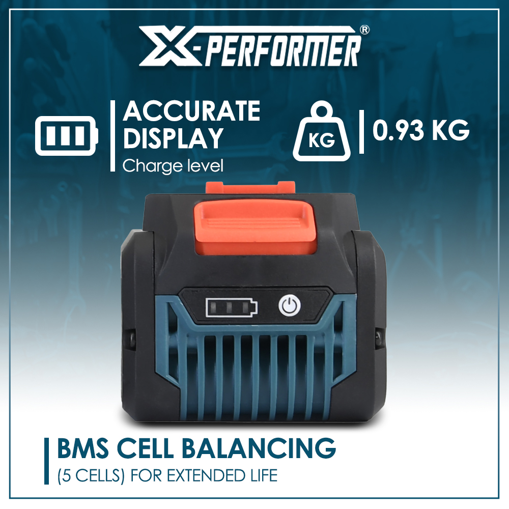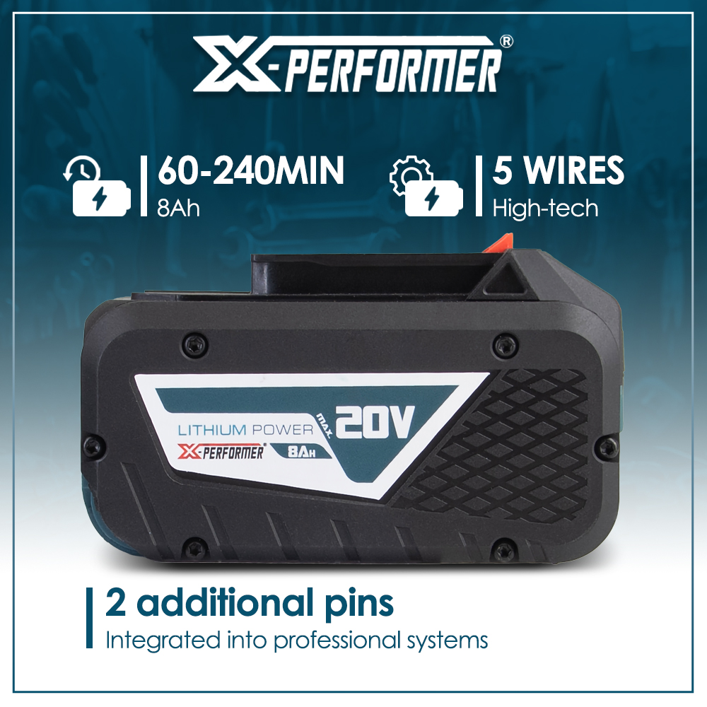 | Retour Vous avez une question Marque: X-PERFORMER Garantie: 3 ans Description: Cette batterie lithium 20V s'adapte sur tous les outils de la gamme X-Performer nouvelle génération (ne convient pas pour la gamme X-Performer blanche) et est compatible avec les chargeurs XPCHAR20-SR1, XPCHAR20-SSR3, XPCHAR20-SSR4, XPCHAR20-DR1 ou XPCHAR20-DSR2). Ces batteries hautes technologies possèdent 5 fils. Le nombre de fils d'une batterie indique son niveau de communication avec l'outil et le chargeur. Plus il y a de fils, plus la gestion électronique est avancée : meilleure sécurité, optimisation de la durée de vie et performances plus précises. Les 2 broches supplémentaires, implantées dans les systèmes professionnels offrent un contrôle poussé : - communication avancée : échange de données plus riches - identification de la batterie : type, capacité… - Etat de charge précis : affiche exact du niveau de charge - Equilibrage des cellules : surveillance individuelle des 5 cellules par le BSM afin de prolonger la durée de vie - Diagnostics possibles : suivis des cycles de charge Caractéristiques : - Voltage : 20V - Capacité : 8Ah - Technologie : Lithium - Temps de charge : 60 à 240 minutes selon le chargeur - Poids : 0.93 kg Code EAN/GLN: 5411074313401 Poids: 0.99 kg Stock: disponible ECO-participation pour une livraison en Belgique: 0,00 € HT Les photos: Vue principale: 110x110 px, 300x300 px, 500x500 px, 1000x1000 px De face: 110x110 px, 300x300 px, 300x300 px, 1000x1000 px De derrière: 110x110 px, 300x300 px, 300x300 px, 1000x1000 px Du dessus: 110x110 px, 300x300 px, 300x300 px, 1000x1000 px Les catégories: Outillage, Batterie Mots clés: Batterie, lithium, concept, X-Performer |