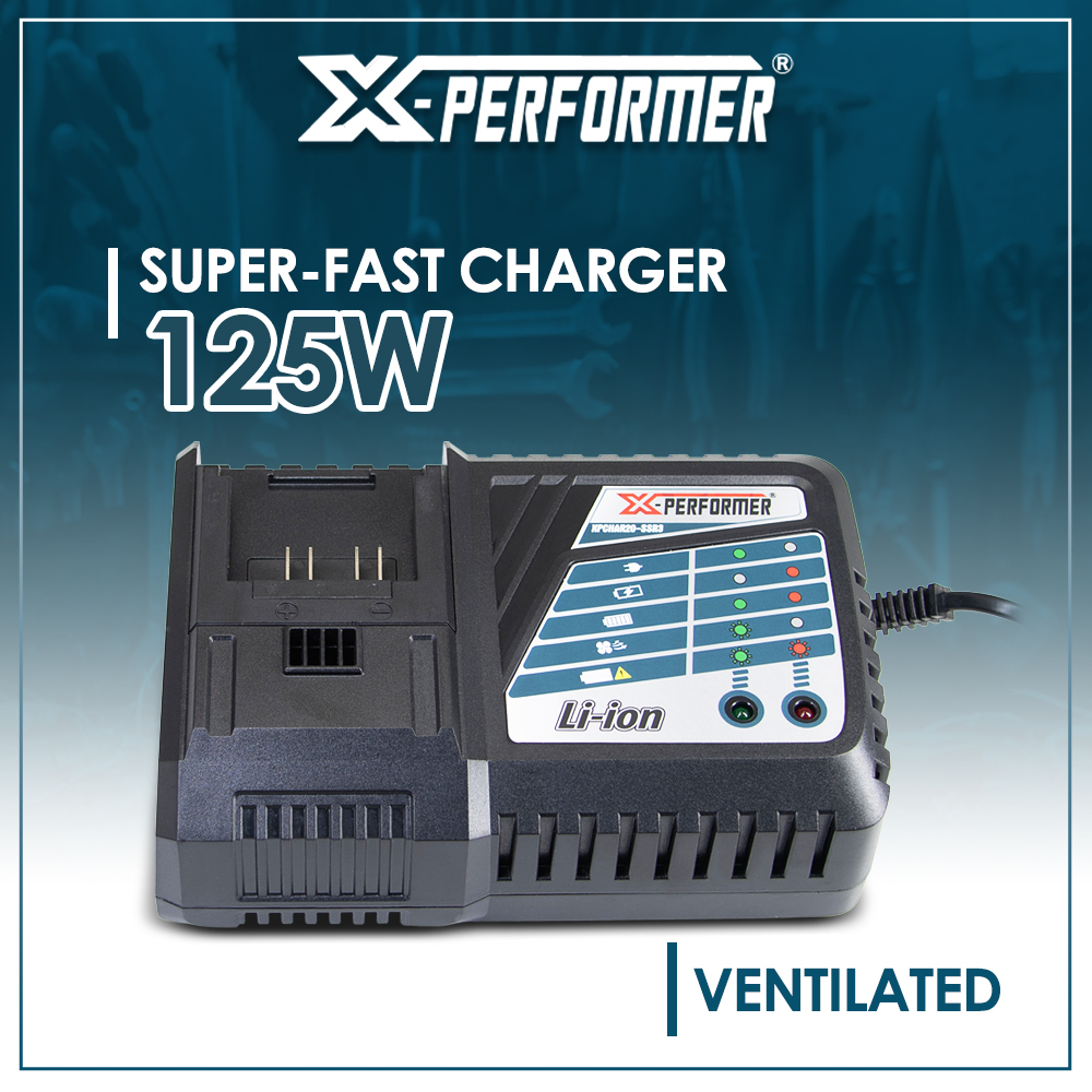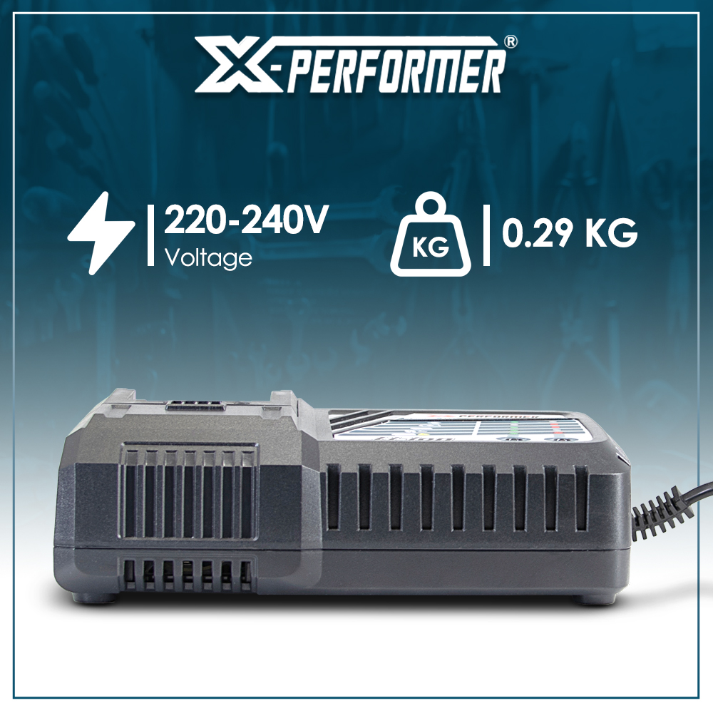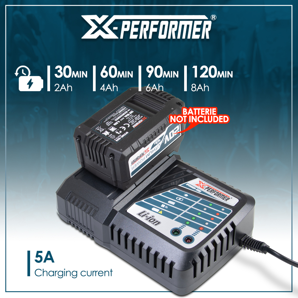| Retour Vous avez une question Marque: X-PERFORMER Garantie: 3 ans Description: Optimisez la durée de vie de vos batteries avec ce chargeur ventilé conçu pour les batteries lithium d'outils électroportatifs. Avec son système de refroidissement intégré, il garantit une charge, plus sûre, plus rapide et plus efficace. Ce chargeur vous permet de charger les batteries X-Performer nouvelle génération XPBAT20-2A, XPBAT20-4A, XPBAT20-6A et XPBAT20-8A (ne convient pas pour les anciennes générations XPBAT2A et XPBAT4A). Caractéristiques : - Puissance de charge : 125W - Courant de charge : 5A - Voltage : 100-240V - Temps de charge : 30 minutes pour la 2Ah, 60minutes pour la 4Ah, 90 minutes pour la 6Ah et 120 minutes pour la 8Ah - Poids : 0.7kg Code EAN/GLN: 5411074313418 Poids: 0.79 kg Stock: disponible ECO-participation pour une livraison en Belgique: 0,60 € HT Les photos: Vue principale: 110x110 px, 300x300 px, 500x500 px, 1000x1000 px De face: 110x110 px, 300x300 px, 300x300 px, 1000x1000 px De derrière: 110x110 px, 300x300 px, 300x300 px, 1000x1000 px Du dessus: 110x110 px, 300x300 px, 300x300 px, 1000x1000 px Les catégories: Outillage, Chargeur Mots clés: Chargeur, super, rapide, ventilé, pour, batterie, concept, X-Performer |