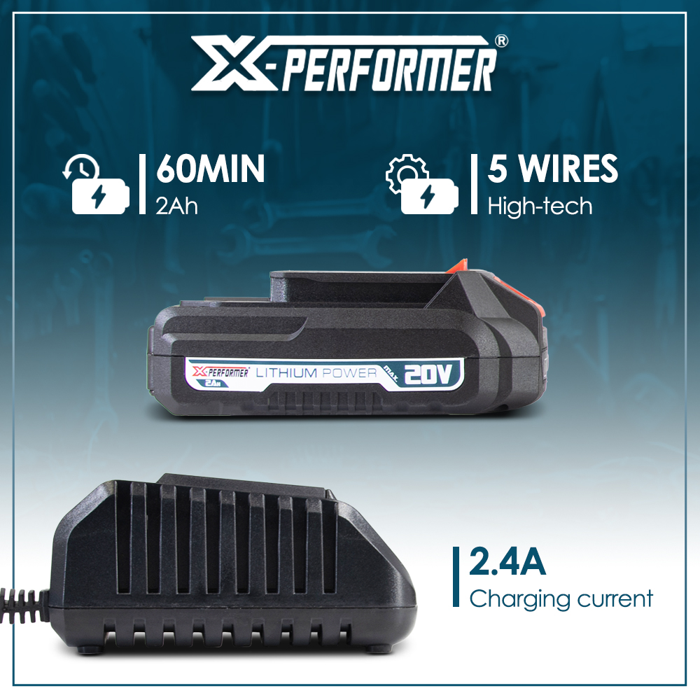 | Retour Vous avez une question Marque: X-PERFORMER Garantie: 3 ans Description: Ce kit de démarrage vous permettra d'alimenter vous produits du concept X-Performer 2026. Il est composé d'une batterie 20V – 2Ah et d'un chargeur simple rapide. Ce chargeur vous permet de charger les batteries X-Performer nouvelle génération XPBAT20-2A, XPBAT20-4A, XPBAT20-6A et XPBAT20-8A (ne convient pas pour les anciennes générations XPBAT2A et XPBAT4A). Caractéristiques : Chargeur simple : - Puissance de charge : 60W - Courant de charge : 2.4A - Voltage : 220-240V - Temps de charge : 60 minutes pour la 2Ah, 120minutes pour la 4Ah, 180 minutes pour la 6Ah et 240 minutes pour la 8Ah Batterie : - Voltage : 20V - Ampérage : 2Ah Code EAN/GLN: 5411074313449 Poids: 0.80 kg Stock: disponible ECO-participation pour une livraison en Belgique: 0,60 € HT Les photos: Vue principale: 110x110 px, 300x300 px, 500x500 px, 1000x1000 px De face: 110x110 px, 300x300 px, 300x300 px, 1000x1000 px De derrière: 110x110 px, 300x300 px, 300x300 px, 1000x1000 px Du dessus: 110x110 px, 300x300 px, 300x300 px, 1000x1000 px Les catégories: Outillage, Batterie Mots clés: démarrage, composé, d'une, batterie, d'un, chargeur, simple, pour, concept, X-Performer. |