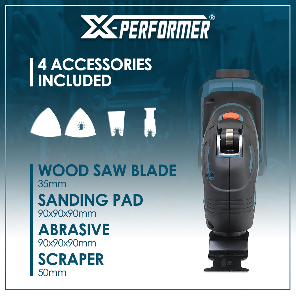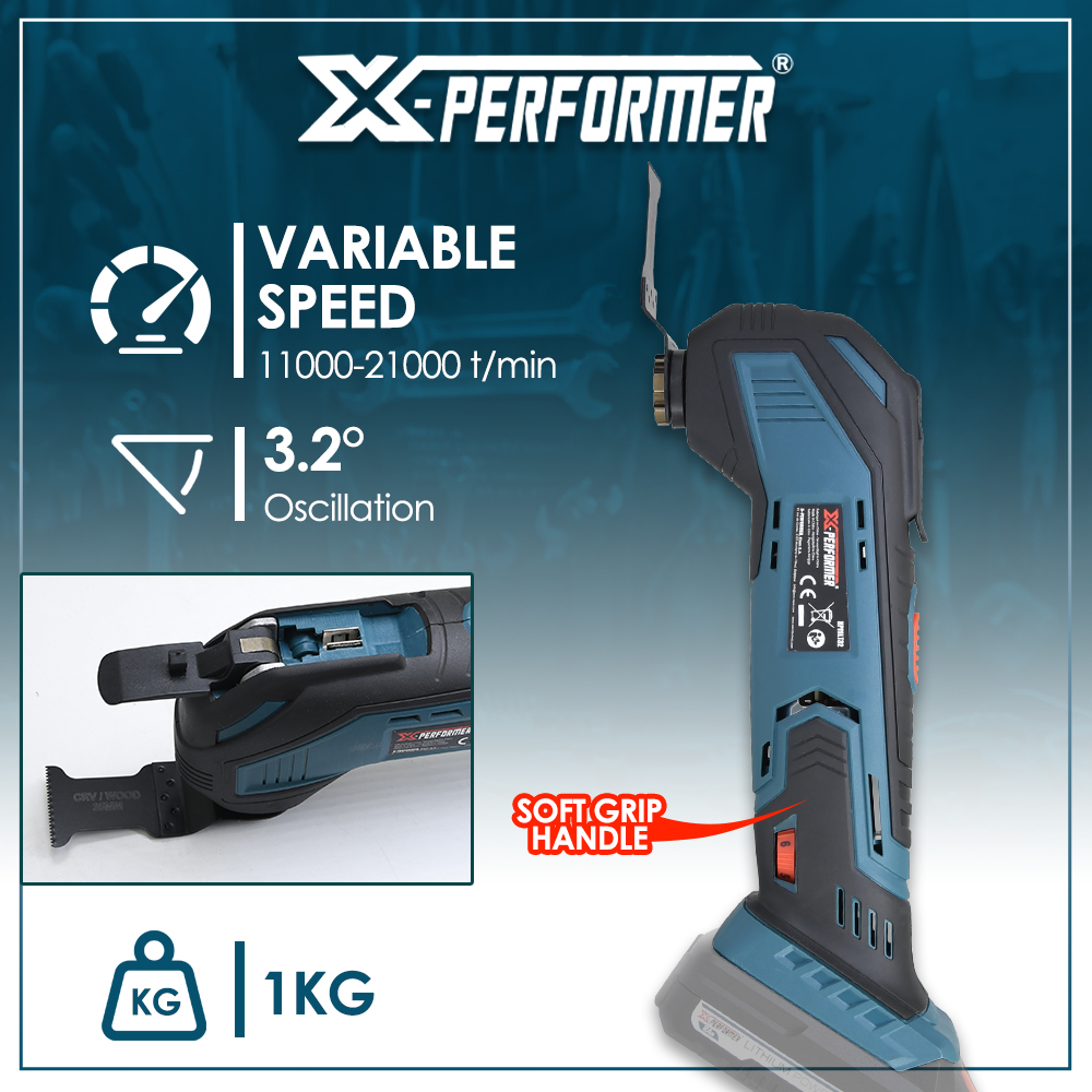 | Retour Vous avez une question Marque: X-PERFORMER Garantie: 3 ans Description: Réalisez tous vos travaux de réparation et rénovation avec cet outil multifonction de la marque X-Performer. Avec une puissance de 20 V et un système d'oscillation, le XPMLT32 vous rendra de nombreux services. Très pratique, cet outil multifonction dispose d'un changement rapide des accessoires . Livré avec ses accessoires, vous obtenez l'outil dont vous avez besoin en un clin d'Å“il. L'outil multi fonctions XPMLT32 vous offre une expérience d'utilisation excellente. Il dispose d'une vitesse variable ainsi qu'une poignée softgrip qui assure une prise en main optimale. Vous achetez séparément votre batterie 2 Ah (XPBAT20-2A), 4Ah (XPBAT20-4A), 6 Ah (XPBAT20-6A) ou 8 Ah (XPBAT20-8A), votre chargeur rapide (XPCHAR20-SR1, XPCHAR20-SSR3, XPCHAR20-SSR4, XPCHAR20-DR1 ou XPCHAR20-DSR2) ou votre kit de démarrage (XPSTART-D4A23, XPSTART-S2A ou XPSTART-S24A) lors de l'acquisition de votre première machine puis au gré de vos envies ou de vos besoins, vous pouvez acheter une seconde machine sans devoir investir dans une nouvelle batterie ni un nouveau chargeur, ce qui représente une économie non négligeable (Attention, les machines X-Performer blanches ne sont pas compatibles avec ces batteries et ces chargeurs). L'outil multi fonctions sans fil XPMLT32 est garanti 10 ans. Caractéristiques : - Puissance: 20V max - Vitesse variable: 11000-21000 t/min - Angle d'oscillation: 3.2° - Livré en boite couleur sans batterie ni chargeur - Poignée soft grip - Livré avec accessoires (1 lame de scie pour le bois 35mm, 1 patin de ponçage 90x90x90mm, 1 abrasif 90x90x90mm et un grattoir 50mm) - Poids net sans batterie : 1kg Code EAN/GLN: 5411074313586 Poids: 1.27 kg Stock: disponible ECO-participation pour une livraison en Belgique: 0,53 € HT Les photos: Vue principale: 110x110 px, 300x300 px, 500x500 px, 1000x1000 px De face: 110x110 px, 300x300 px, 300x300 px, 1000x1000 px De derrière: 110x110 px, 300x300 px, 300x300 px, 1000x1000 px Du dessus: 110x110 px, 300x300 px, 300x300 px, 1000x1000 px Les catégories: Outillage, Outil multifonctions Mots clés: Outil, multifonctions, sans, accessoires, Livré, sans, batterie, chargeur |