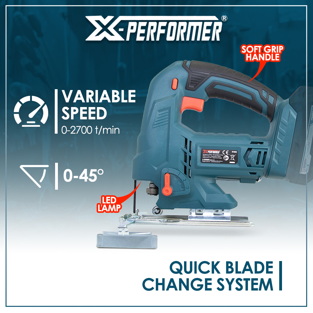 | Retour Vous avez une question Marque: X-PERFORMER Garantie: 3 ans Description: La scie sauteuse pendulaire XPJS55 de la marque X-Performer est pratique et performante. Elle possède une capacité de coupe de 55 mm dans le bois et de 6 mm dans l'acier. Une inclinaison de 0 à 45° est possible afin de permettre les découpes en biais. Cette scie sauteuse sans fil offre un excellent confort de travail. Elle dispose d'une poignée soft grip pour une prise en main sûre, une vitesse variable de 0 à 2700t/min et une lampe Led éclairant la zone de travail. Vous achetez séparément votre batterie 2 Ah (XPBAT20-2A), 4Ah (XPBAT20-4A), 6 Ah (XPBAT20-6A) ou 8 Ah (XPBAT20-8A), votre chargeur rapide (XPCHAR20-SR1, XPCHAR20-SSR3, XPCHAR20-SSR4, XPCHAR20-DR1 ou XPCHAR20-DSR2) ou votre kit de démarrage (XPSTART-D4A23, XPSTART-S2A ou XPSTART-S24A) lors de l'acquisition de votre première machine puis au gré de vos envies ou de vos besoins, vous pouvez acheter une seconde machine sans devoir investir dans une nouvelle batterie ni un nouveau chargeur, ce qui représente une économie non négligeable (Attention, les machines X-Performer blanches ne sont pas compatibles avec ces batteries et ces chargeurs). La scie sauteuse sans fil XPJS55 est garantie 10 ans. Caractéristiques : - Puissance: 20V max - Vitesse variable: 0-2700 t/min - Inclinaison: 0-45° - Capacité de coupe: Bois 55 mm - Acier 6 mm - Livré en boite couleur sans batterie ni chargeur - Poignée soft grip - Système rapide de changement de lame - Pendulaire 3 positions - Lampe Led éclairant la zone de travail Code EAN/GLN: 5411074313616 Poids: 2.00 kg Stock: disponible ECO-participation pour une livraison en Belgique: 0,53 € HT Les photos: Vue principale: 110x110 px, 300x300 px, 500x500 px, 1000x1000 px De face: 110x110 px, 300x300 px, 300x300 px, 1000x1000 px De derrière: 110x110 px, 300x300 px, 300x300 px, 1000x1000 px Du dessus: 110x110 px, 300x300 px, 300x300 px, 1000x1000 px Les catégories: Outillage, Scie sauteuse Mots clés: Scie, sauteuse, pendulaire, livrée, sans, batterie, chargeur |