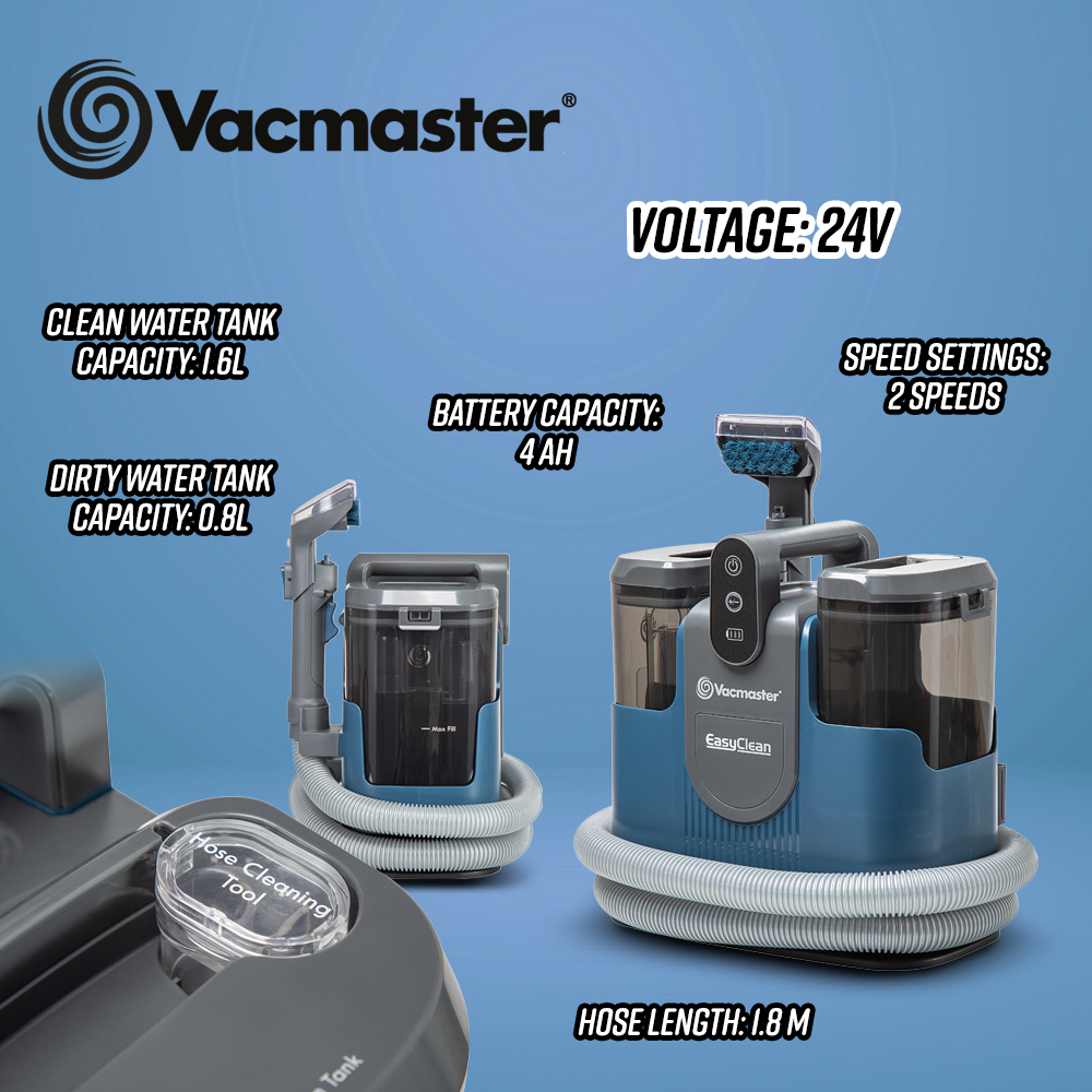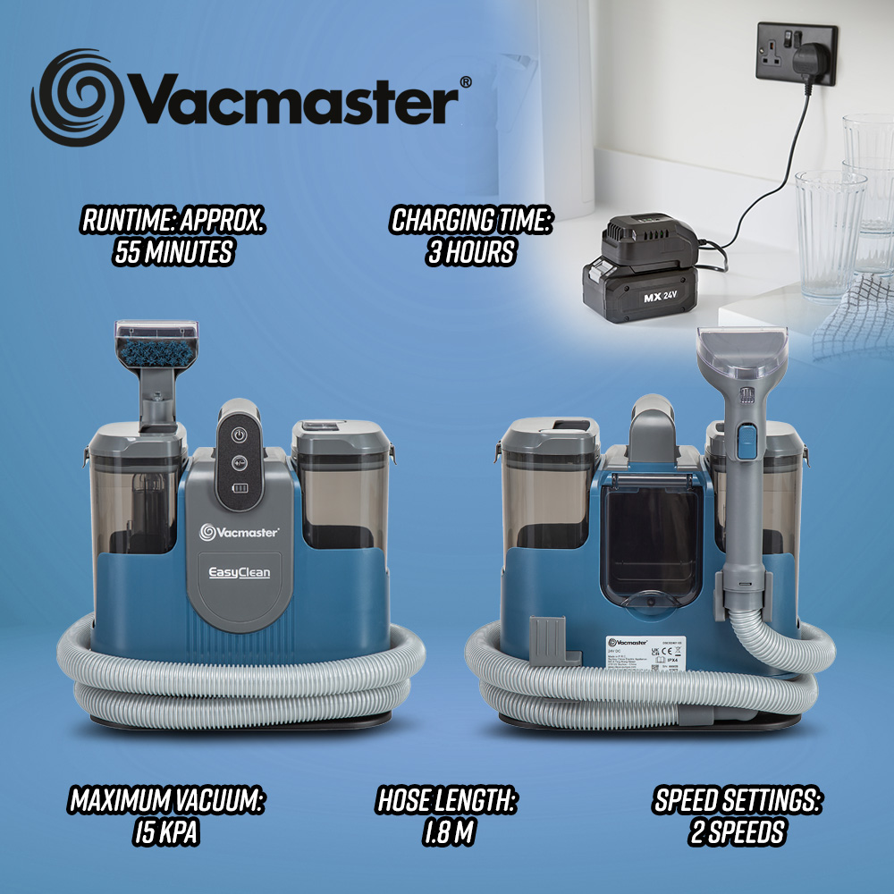 | Retour Vous avez une question Marque: Vacmaster Garantie: 1 an Description: Ce nettoyeur de tapis rechargeable de la marque Vacmaster deviendra rapidement votre allié pour l’entretien des vos tapis, moquettes, canapés, sièges de voitures… Technologie Dual Tank: réservoirs d'eau amovibles pour faciliter le remplissage et la vidange. Le système à deux réservoirs permet de nettoyer avec de l'eau propre tandis que la saleté et la poussière sont stockées dans un réservoir séparé. La capacité du réservoir d'eau douce est de 1.6l et la capacité du réservoir d'eau usée est de 0.8l. Traitez facilement les taches d'animaux: Les chiens ou les chats rentrent dans la maison de l'extérieur, et les empreintes de pattes sales peuvent également être facilement aspirées avec de l'eau. Les nettoyants pour tissus peuvent ramasser les poils et la poussière et enlever les poils d'animaux des canapés et des tapis. Formule de nettoyage incluse: La solution de nettoyage pour tapis incluse a été spécialement conçue pour être utilisée avec le nettoyeur de taches pour tapis Vacmaster EasyClean. Idéal pour la maison et la voiture: le tuyau intégré de 1,8 mètre du nettoyeur vous permet de nettoyer facilement les coins de votre maison ainsi que les sièges et les tissus des sièges à l'intérieur de la voiture. Accessoires fournis : 1 batterie 24V – 4Ah, un chargeur (3H), 1 brosse pour tâches tenaces (nettoyage de tapis, moquettes, tapisseries et surface difficiles d’accès) et un flexible 1.8M. Caractéristiques : - Puissance : 24V - Ampérage : 4 Ah - Capacité du réservoir d’eau propre : 1.6L - Capacité du réservoir eau sale : 0.8L - Dépression max : 15Kpa - Longueur du flexible : 1.8M - Autonomie : 55 minutes environ - Temps de charge : 3H - Réglages de la vitesse : 2 vitesses - Poids net : 4.9kg Code EAN/GLN: 6939349526473 Poids: 5.50 kg Stock: disponible ECO-participation pour une livraison en Belgique: 1,45 € HT Les photos: Vue principale: 110x110 px, 300x300 px, 500x500 px, 1000x1000 px De face: 110x110 px, 300x300 px, 300x300 px, 1000x1000 px De derrière: 110x110 px, 300x300 px, 300x300 px, 1000x1000 px Du dessus: 110x110 px, 300x300 px, 300x300 px, 1000x1000 px Zoom: 110x110 px, 300x300 px, 300x300 px, 1000x1000 px Les catégories: Maison, Aspirateur Mots clés: Aspirateur, nettoyeur, tapis, tissus, rechargeable |