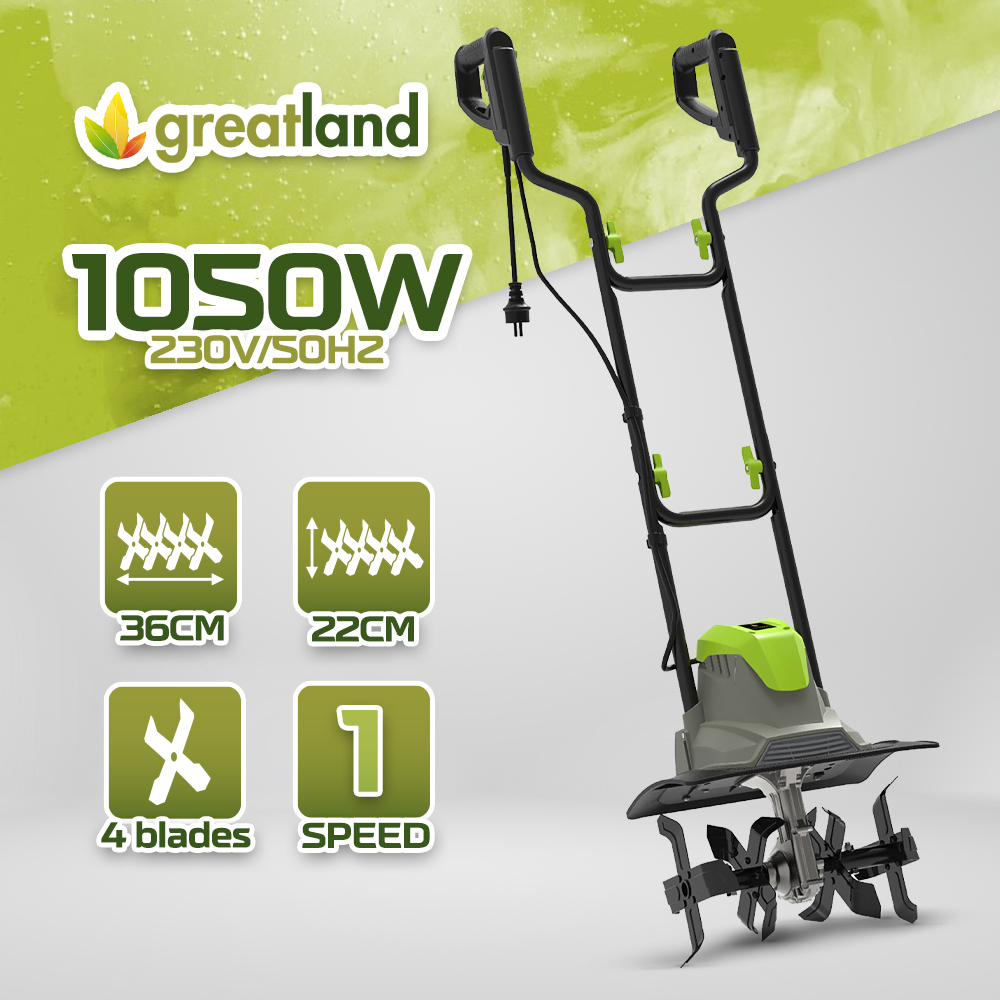 | Retour Vous avez une question Marque: Greatland Garantie: 1 an Description: Cette motobineuse électrique Elem Garden Technic d'une puissance 1050 w et dotée de 4 fraises, est l'outil idéal pour retourner la terre de votre potager ou de votre jardin. Elle dispose d'une largeur de travail de 360 mm ainsi que d'une profondeur de travail de 220 mm. D'un poids de 7.3 kg, cette motobineuse électrique est légère et facilement maniable. Elle est particulièrement adaptée aux particuliers qui souhaitent entretenir leur potager de manière régulière. Caractéristiques : - Voltage : 230 V / 50 Hz - Puissance: 1050 W - Largeur de travail : 36 cm - Profondeur de travail max : 22 cm - Fraises : 4 - Vitesse : 1 - Emballage : boite couleur - Garantie : 3 ans Code EAN/GLN: 5411074243074 Poids: 8.60 kg Stock: disponible ECO-participation pour une livraison en Belgique: 2,33 € HT Les photos: Vue principale: 110x110 px, 300x300 px, 500x500 px, 1000x1000 px De face: 110x110 px, 300x300 px, 300x300 px, 1000x1000 px De derrière: 110x110 px, 300x300 px, 300x300 px, 1000x1000 px Les catégories: Jardin, Motobineuse Mots clés: Motobineuse, électrique, 1050W, 36cm, Fraises, Greatland |