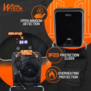 | Retour Vous avez une question Marque: WARM TECH Garantie: 2 ans Description: Ce radiateur soufflant de la marque Warm Tech prend peu de place et s'accroche au mur. Il permet de chauffer votre salle de bain tout en faisant sécher votre serviette grâce à son bras amovible. Avec deux positions de chauffe et une position ventilateur, il s'adapte facilement à vos besoins. Grâce à sa télécommande, vous pouvez régler facilement la chaleur désirée. Pour un meilleur confort d'utilisation, il dispose d'un affichage digital de la température. Il est également programmable et permet de régler facilement la durée de chauffe. De plus, le radiateur céramique WTBH2025TL-23 dispose d'une protection efficace contre la surchauffe. Caractéristiques : - Puissance: 2000 W - 2 positions de chauffe: 1000 - 2000W + 1 position ventilateur - Équipé d'une télécommande - Ce chauffage possède également un timer 24H qui vous permettra de choisir la durée de chauffe - Affichage digital de la température (display LED) - Protection en cas de surchauffe - Indice de protection : IP23 - Détection automatique de l'ouverture et fermeture des fenêtres (Lorsqu'une fenêtre est ouverte, le radiateur détecte automatiquement une baisse de la température ambiante et abaisse sa propre température. Une fois la fenêtre refermée, il remonte sa température. Ainsi, il évite de chauffer la pièce inutilement) - Fixations murales incluses - Dimensions: 32 x 16.5 x 49 cm (bras sèche serviettes inclus) - Poids net : 2.6kg - Livré en boîte couleur - Garantie 2 ans Code EAN/GLN: 5411074246747 Poids: 3.00 kg Stock: disponible ECO-participation pour une livraison en Belgique: 0,92 € HT Les photos: Vue principale: 110x110 px, 300x300 px, 500x500 px, 1000x1000 px De face: 110x110 px, 300x300 px, 300x300 px, 1000x1000 px De derrière: 110x110 px, 300x300 px, 300x300 px, 1000x1000 px Du dessus: 110x110 px, 300x300 px, 300x300 px, 1000x1000 px Zoom: 110x110 px, 300x300 px, 300x300 px, 1000x1000 px Les catégories: Maison, Chauffage Mots clés: Radiateur, soufflant, mural, sèche, serviettes, 2000W, avec, façade, verre. |