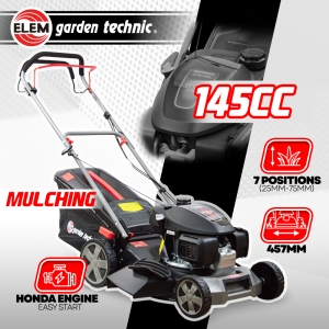 | Retour Vous avez une question Marque: ELEM Garden Technic Garantie: 3 ans Description: Cette tondeuse thermique autotractée équipée d'un moteur Honda GCV145 est parfaite pour les personnes à la recherche d'un outil puissant et rapide. Grâce à sa largeur de travail de 457 mm, elle est adaptée à la tonte de moyen ou grand terrain. Elle vous offrira un travail parfait grâce à son système de réglage centralisé sur 7 positions permettant d'adapter facilement la hauteur de coupe. Munie d'une poignée « soft grip », elle vous offre un confort et une prise en main irréprochable. Elle possède également une poignée à l'avant pour faciliter le transport. Cette tondeuse à essence dispose d'un carter en acier résistant aux chocs. Elle est équipée d'un bac récolteur souple avec hard top renforcé de 60 litres afin de vous éviter un grand nombre de trajets jusqu'au compost. Cette tondeuse dispose des fonctions suivantes : Fonction Mulching (Cette fonction vous sera utile si vous souhaitez tondre et fertiliser votre jardin en même temps. Cela améliorera l'aspect ainsi que la santé de votre gazon.) - Éjection arrière - Éjection latérale – Nettoyage du carter intégré – moteur Easy start (démarrage simple et facile sans avoir à amorcer le moteur). Garantie : 3 ans Caractéristiques : - Moteur Honda easy start (démarrage simple et facile sans avoir à amorcer le moteur). - Puissance: 145 CC / 3Kw - Couple maximal : 9.1Nm - Capacité du réservoir essence: 0.91 L (95/98 oct sans plomb) - Capacité du réservoir huile: 0,41 L (SAE 15W-40) - Largeur de travail : 457 mm - Auto-tractée - Système hauteur de coupe : central 7 positions (25 - 75 mm) - Type de carter : Acier - Capacité du bac : 60 L (bac souple avec hard top renforcé) - Roues avant : 173mm - Roues arrière : 228mm - Éjection arrière - Fonction mulching - Éjection latérale - Poignée soft grip - Système de nettoyage du carter intégré - Poignée à l'avant de la tondeuse pour un transport aisé - Poids à vide : 26.5kg Code EAN/GLN: 5411074242008 Poids: 29.50 kg Stock: indisponible ECO-participation pour une livraison en Belgique: 0,00 € HT Les photos: Vue principale: 110x110 px, 300x300 px, 500x500 px, 1000x1000 px De face: 110x110 px, 300x300 px, 300x300 px, 1000x1000 px De derrière: 110x110 px, 300x300 px, 300x300 px, 1000x1000 px Du dessus: 110x110 px, 300x300 px, 300x300 px, 1000x1000 px Zoom: 110x110 px, 300x300 px, 300x300 px, 1000x1000 px Les catégories: Jardin, Tondeuse thermique Mots clés: Tondeuse, thermique, tractée, 145CC, avec, moteur, Honda,, mulching, éjection, latérale |