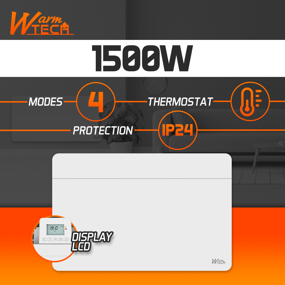 | Retour Vous avez une question Marque: WARM TECH Garantie: 2 ans Description: Ce chauffage électrique d’une puissance de 1000 W permet de chauffer rapidement votre intérieur. Il dispose de 4 modes (Confort, Eco, Hors gel, Stand by) et permet de régler la température de 5 à 29° pour une utilisation plus adaptée à vos besoins. Il permet un réglage facile de la température grâce à son thermostat électronique avec display LCD. Ce convecteur Warm Tech possède une protection contre la surchauffe ainsi qu’un système de détection de fenêtre ouverte. Vous ne consommerez plus d’énergie inutilement. Il est livré avec des fixations murales. Caractéristiques: - Puissance: 1500 W - Thermostat avec display Lcd (fil pilote 6 ordres) - Modes: Confort - Eco - Hors gel - Stand by - 3 programmes hebdomadaires préinstallés + 1 personnalisable - Verrouillage du clavier - Réglage de température de 5 à 29° - Protection contre la surchauffe - Voyant lumineux de fonctionnement - Elément de chauffe en aluminium - Livré avec fixations murales - Dimensions: 70x9.7x35.4 cm - IP24 - Détection en cas de fenêtre ouverte - Poids : 5.8kg Code EAN/GLN: 5411074249175 Poids: 6.80 kg Stock: disponible ECO-participation pour une livraison en Belgique: 1,75 € HT Les photos: Vue principale: 110x110 px, 300x300 px, 500x500 px, 1000x1000 px De face: 110x110 px, 300x300 px, 300x300 px, 1000x1000 px De derrière: 110x110 px, 300x300 px, 300x300 px, 1000x1000 px Du dessus: 110x110 px, 300x300 px, 300x300 px, 1000x1000 px Zoom: 110x110 px, 300x300 px, 300x300 px, 1000x1000 px Les catégories: Maison, Chauffage Mots clés: Chauffage, électrique, mural, 1500W, IP24, pilote, ordres |