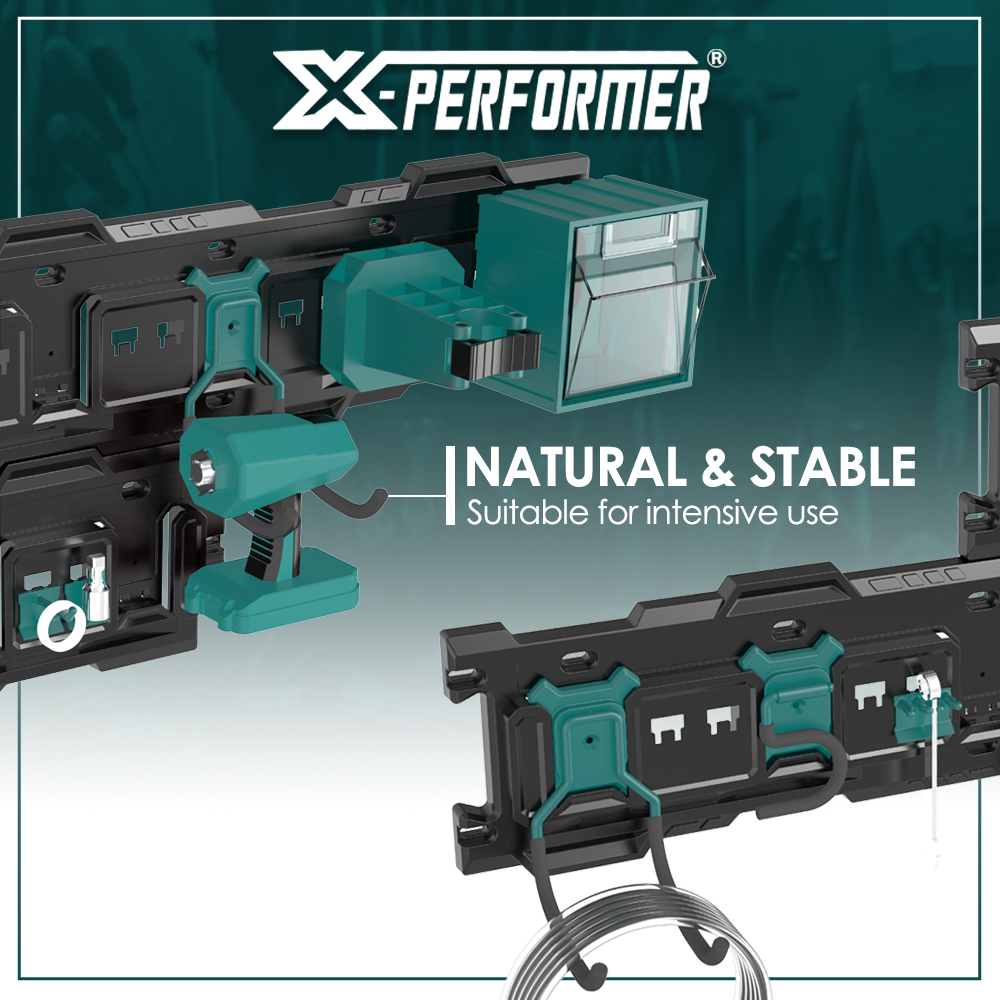 Faisant partie intégrante de la gamme de rangement X-PERFORMER, ce produit s’inscrit dans un concept totalement modulable et interchangeable (crochets, supports, bacs, accessoires spécialisés).