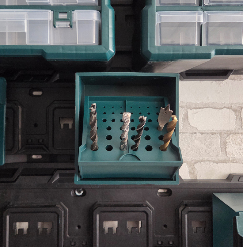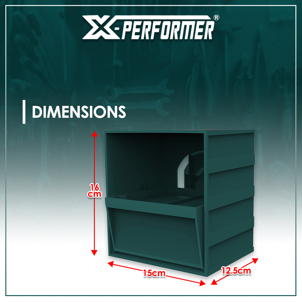 | Retour Vous avez une question Marque: X-PERFORMER Garantie: 3 ans Description: La boîte de rangement XPST15 est conçue pour organiser vos embouts et mèches tout en gardant une visibilité immédiate sur le contenu. Le support pivotant intérieur perforé est conçu pour organiser efficacement les forêts, mèches… Grâce aux différents diamètres, chaque outil dispose de son emplacement dédié, assurant une identification rapide, un accès immédiat et un rangement sécurisé. Faisant partie intégrante de la gamme de rangement XPERFORMER, ce produit s’inscrit dans un concept totalement modulable et interchangeable (crochets, supports, bacs, accessoires spécialisés). Ajoutez, déplacez, réorganisez : votre mur évolue au rythme de votre équipement, en toute simplicité et sans contraintes. Compatible avec une installation murale grâce au support référence XPST2 (vendu séparément) Caractéristiques : - Rangement individuel par diamètre - Excellente visibilité des outils - Accès rapide et intuitif - Robuste - Dimensions : l 15 x h 16 x p 11,3 cm - 42 emplacements perforés - Couleur : vert - Ouverture du support inclinable Poids net : 428 g Code EAN/GLN: 5411074253479 Poids: 0.50 kg Stock: disponible ECO-participation pour une livraison en Belgique: 0,00 € HT Les photos: Vue principale: 110x110 px, 300x300 px, 500x500 px, 1000x1000 px De face: 110x110 px, 300x300 px, 300x300 px, 1000x1000 px De derrière: 110x110 px, 300x300 px, 300x300 px, 1000x1000 px Du dessus: 110x110 px, 300x300 px, 300x300 px, 793x806 px Les catégories: Maison, Rangement Mots clés: Boîte, rangement, pour, embouts, mèches, compatible, avec, concept, rangement, X-performer |